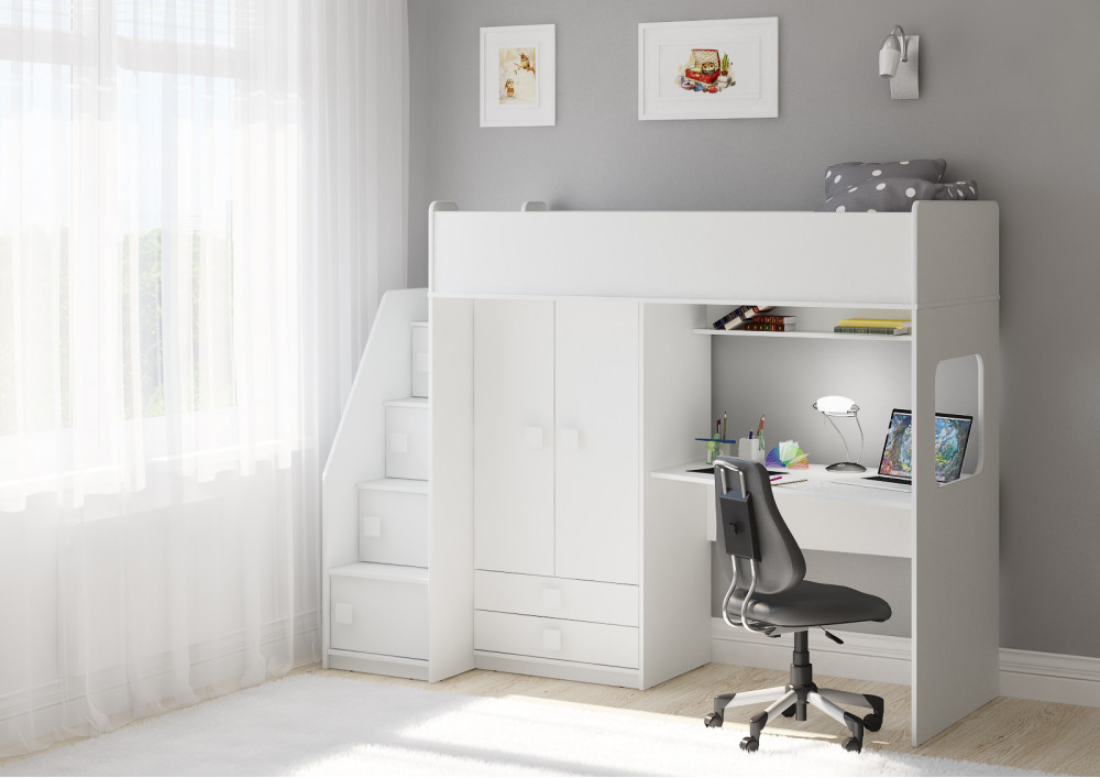 Учебная зона со столом под спальным местом открывает возможности для письменных работ,а также здесь удобно расположить ноутбук.