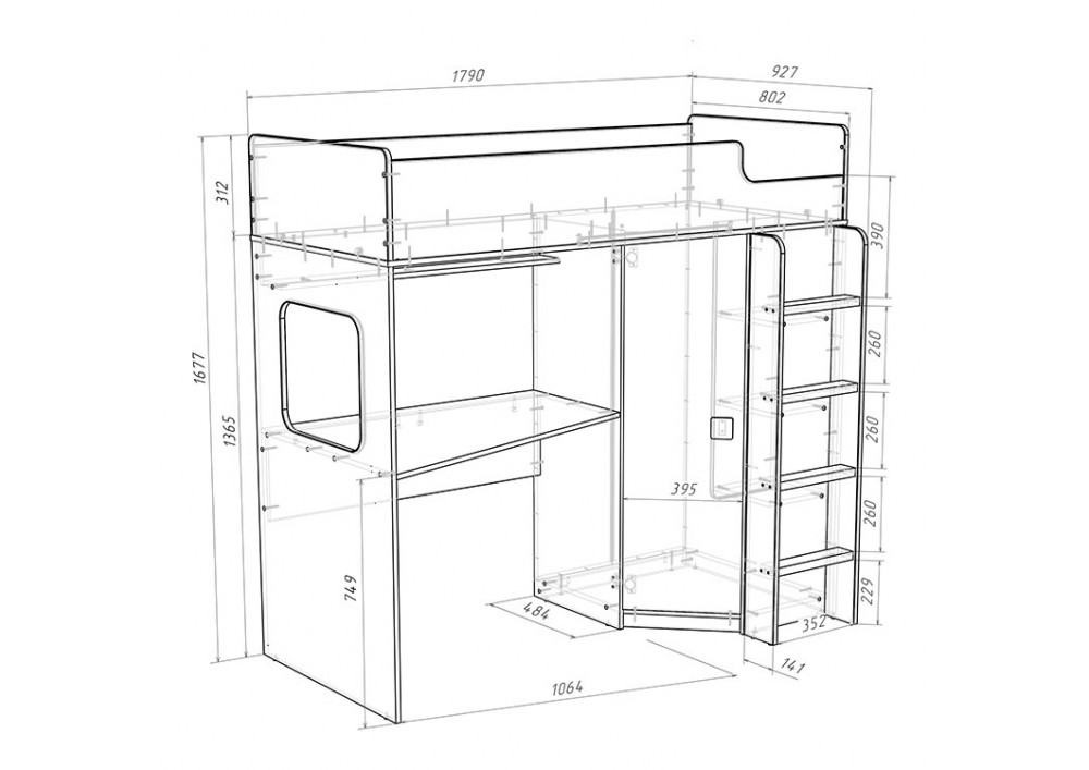 Высота кровати чердака всего 1677 мм.