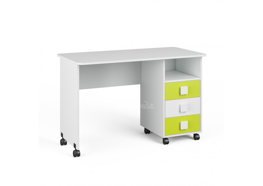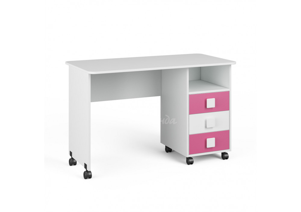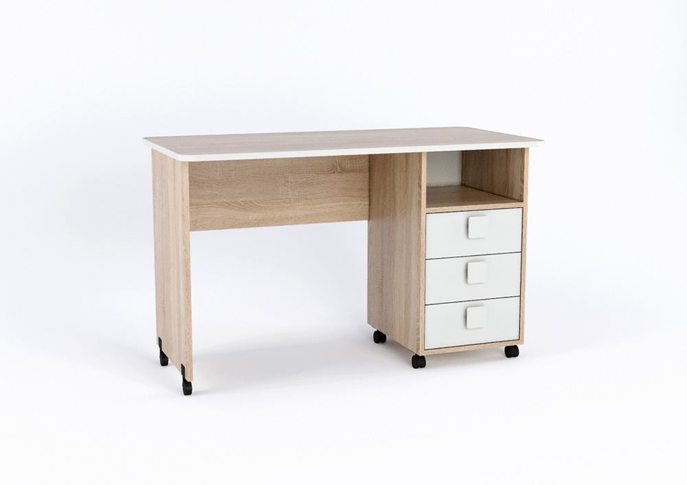 Три выкатных ящика стола обеспечат удобное хранение канцелярии,письменных,учебных и прочих принадлежностей.Над ящиками открытая полка для мелочей,которые будут всегда под рукой.